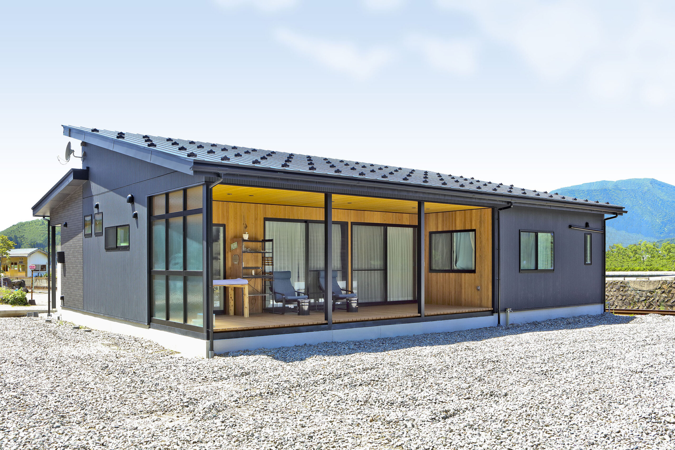 カバードポーチのような大きなデッキ。ご家屋や友人とのバーベキューやお子様の遊び場に。ここに来る人がみんなウキウキ、ワクワクすつような場所ですね。