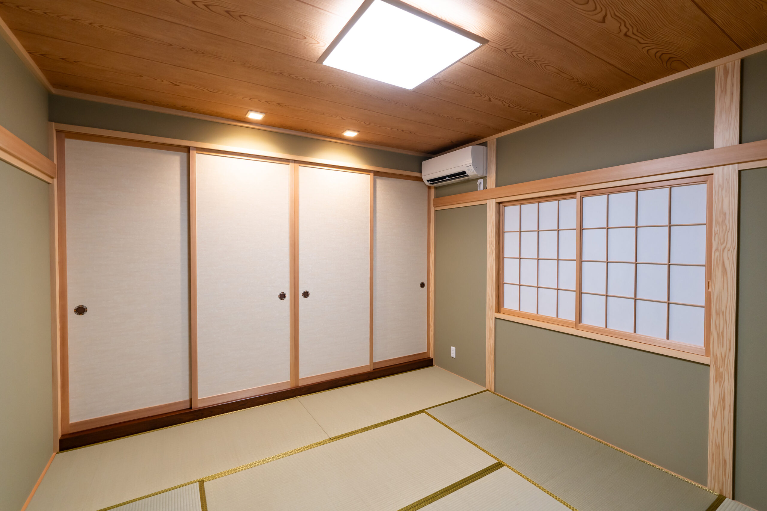 聚楽テイストの和室。この部屋に入ると気持ちが引き締まる感じがします。日本の家ならではの設え、とても落ち着きます。お施主様の拘りが詰まった和室に。