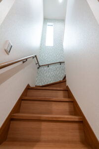 玄関やLDKから2階へと顔を上げれば、明るい階段がお出迎え。ホワイトとグリーンのコントラストが気分を上げてくれます。