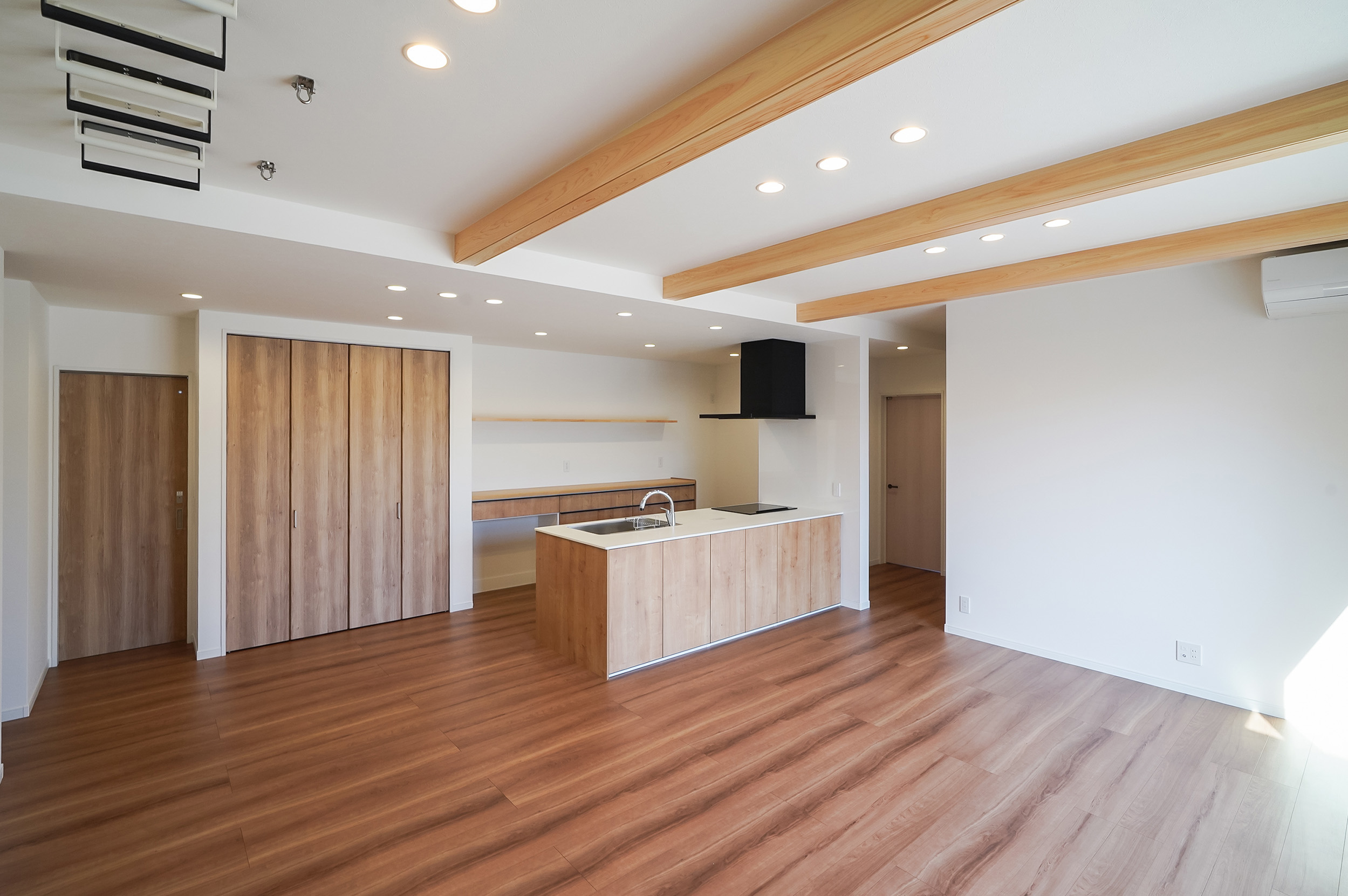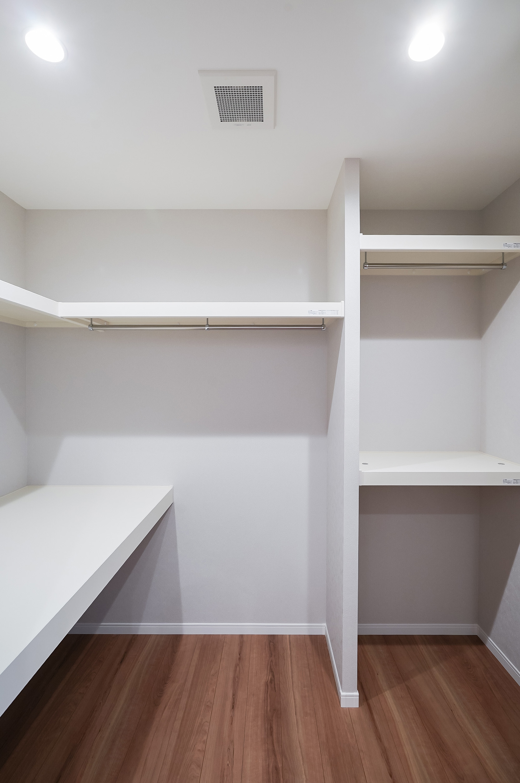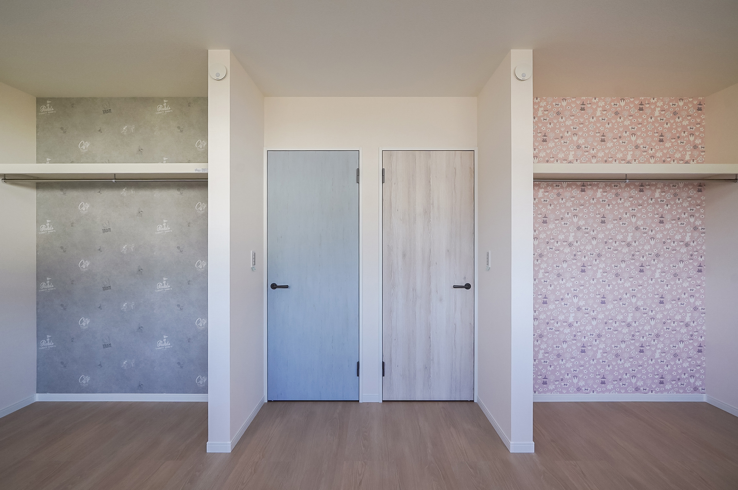 あらかじめ配置されたふたつの扉と、左右対称のクローゼット。それは、お子様の成長をあたたかく見守る「未来への仕掛け」です。壁一枚で仕切るその日まで、この広々とした空間は、家族の思い出を詰め込むための大きなキャンバスに。ライフステージの変化を楽しみ、住まいをアップデートしていく、それが長く愛せる家づくりに欠かせない、余白という名の贅沢がここにあります。